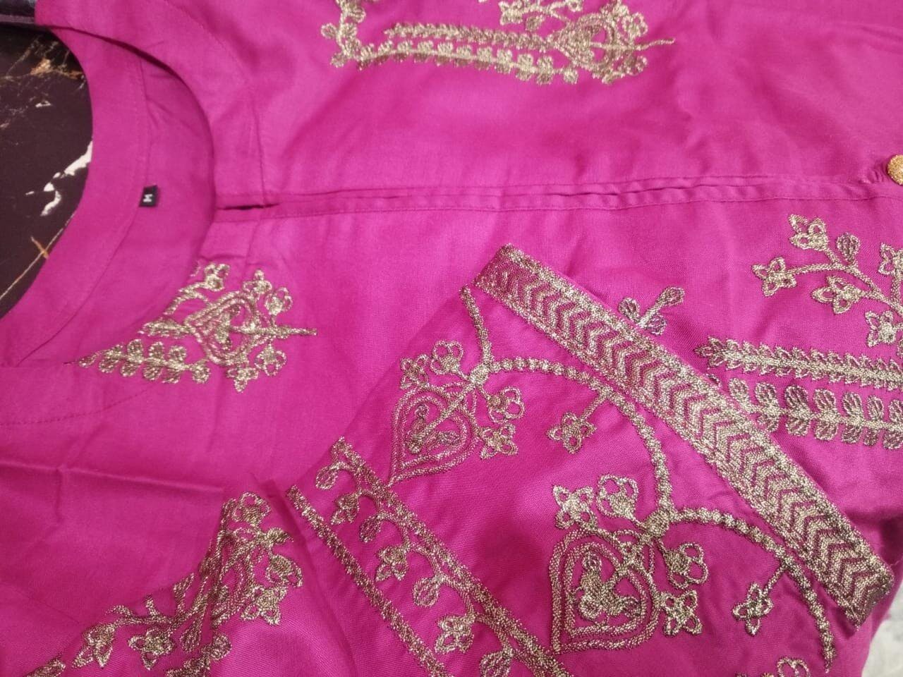Detailing: Golden thread embroidery on neckline, sleeves & borders