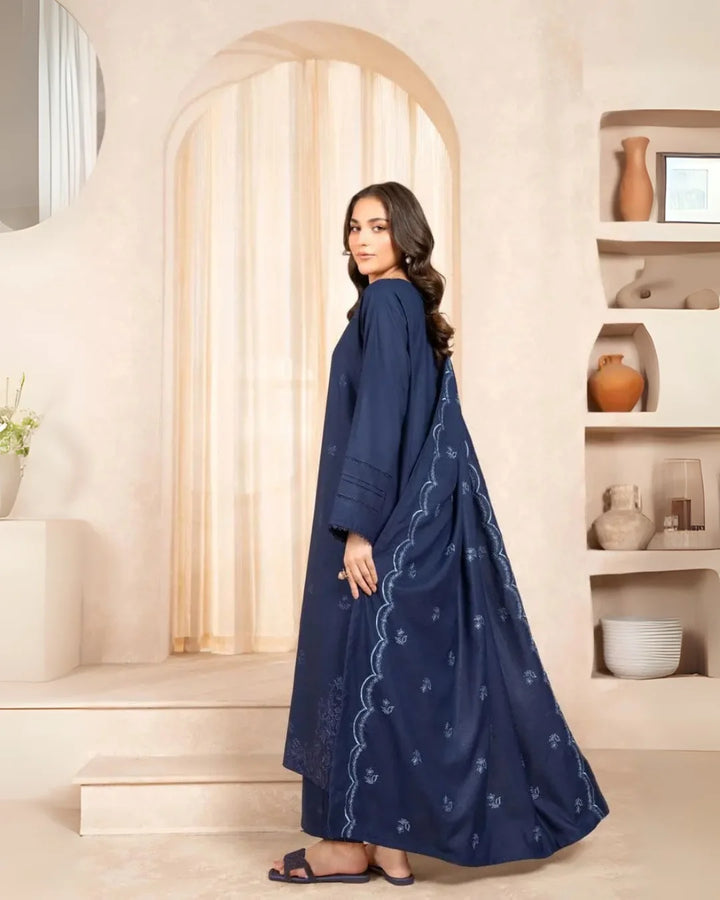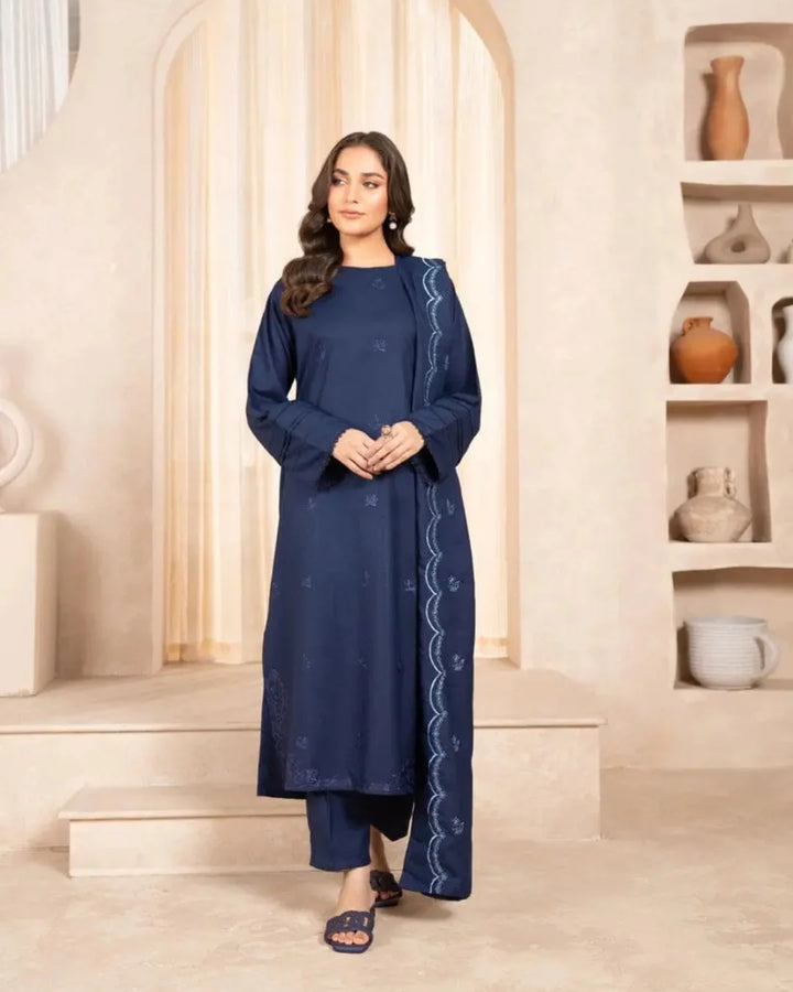 Elegant and timeless, our Arzu 3PC in soothing blue captures the calm charm of winter days. Crafted from premium winter linen, this ensemble blends comfort with sophistication. The graceful embroidery and soft drape of the dupatta make it a must-have for both casual wear and refined gatherings.